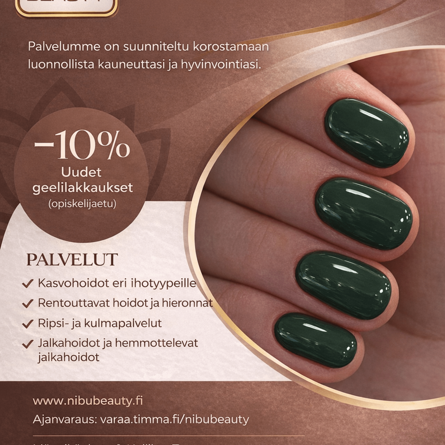 Tampereen Hallilassa sijaitseva Nibu Beauty kutsuu sinut rentoutumaan ja hemmottelemaan itseäsi arjen keskellä.